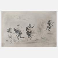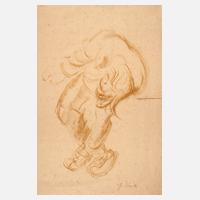 taumelnder Mann, mit wenigen Strichen gekonnte erfasste Szenerie, Kreide in Hellbraun auf Papier, um 1960, rechts unten signiert "G. Kruk", Altersspuren, unter Passepartout montiert, Passepartoutausschnitt ca. 53,5 x 37,5 cm. Künstlerinfo: Gregor/Georg Kruk, (1911 Bratysziw/Ukraine bis 1988 München) deutsch-österreichischer Bildhauer, studierte anfangs in Krakau und seit 1937 an der Berliner Akademie, ab 1945 ansässig in München. Quelle: Internet und Thieme-Becker.