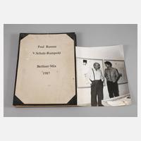 Gemeinschaftsarbeit der Künstler Paul Renner und Volkmar Schulz-Rumpold, handgefertigtes Buch mit zehn tafelfüllenden Mischtechniken, entstand anlässlich einer Ausstellung in der Galerie Michael Haas/Berlin, Auflage zwanzig Bücher mit je zehn Unikaten, 1987, jede Arbeit signiert und teils betitelt, einige Zwischenblätter mit leichten Beschädigungen durch noch frische Farbe beim Binden, Tafelmaß ca. 50 x 35 cm, beigegeben großformatiges Foto der beiden Künstler.