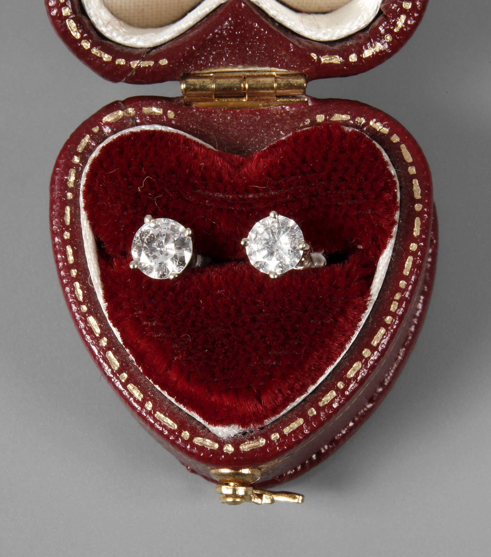Weißgold gestempelt 585, besetzt mit zwei Brillanten von zusammen ca. 0,75 ct, Reinheit PI, Farbe Weiß, in Krappenfassung, G ges. ca. 0,9 g.
