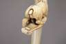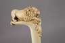 um 1880, geschwungenes Griffstück aus fein beschnitztem Elfenbein, verziert von vollplastischem Löwen über ornamental staffiertem Grund, Nickelmanschette, Schuss aus Ebenholz, Zwinge fehlt, min. Substanzverluste, Altersspuren, trocknungsrissig, H 87 cm. BITTE BEACHTEN: VERSAND ERFOLGT NUR INNERHALB DER EU - SHIPPING TO THE 28 EU MEMBER COUNTRIES ONLY.