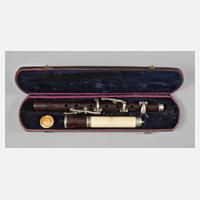 um 1880, gemarkt H. F. Meyer Hannover, Gehäuse aus Palisander bzw. Elfenbein, Nickelmontierungen, mit originalem Etui, trocknungsrissig, L 31,5 cm.