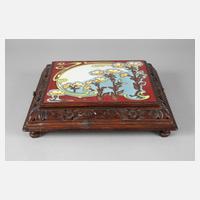 um 1920, gemarkt Zeiss Ikon, Betrachter für Bilderkassetten, mit automatisiertem Wechsel, in absperrbarem Mahagonigehäuse, dazu passender Unterschrank mit Rolloverschluss und einer Bilderkassette mit Ansichten von Essen, funktionstüchtig, guter Zustand, H gesamt 53 cm.