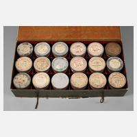 um 1910, 18 Stück, vorwiegend gemarkt, nummeriert und mit Liedangabe, dabei Cylindres Pathé, sowie Artistical Record, unterschiedliche Erhaltungen, im Etui, Maße dieses 14 x 65 x 33 cm.