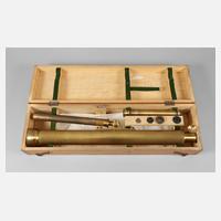um 1900, gemarkt Wilhelm Rabe Ratheno, Modell "Saturn", Messing zaponiert, zweiteilig in originaler Schatulle, mit Wechselokular, funktionstüchtig, L 102 cm.