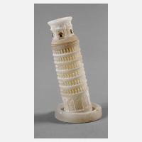 Italien, Ende 19. Jh., Alabaster, stark verkleinertes Modell des schiefen Turm von Pisa, partiell farbig gefasst, kleinste Fehlstellen, H 10,5 cm.