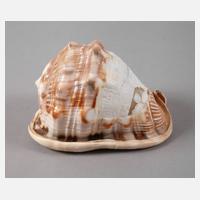 Italien 1920er Jahre, bezeichnet Ostia Stabilimento Roma, Meeresschnecke aufwendig beschnitzt und partiell poliert, als Gemme gearbeitete Ansicht der 1922–24 errichteten Badeanstalt, welche 1943 beim Rückzug der Deutschen zerstört wurde, winz. best., L14,5 cm.