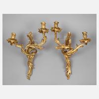 wohl Frankreich, Ende 19. Jh., Bronze gegossen und feuervergoldet, Blattarme mit Früchten, partiell mit feiner Oberflächengravur, zweiflammig mit schraubbaren Tüllen, Befestigungsösen und Löcher zur Elektrifizierung, H je 45 cm.