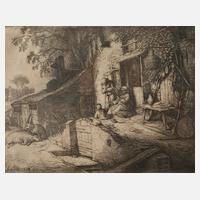 Darstellung einer Bauernfamilie vor ihrem Haus beim Bewachen der Schweine, Radierung mit zartem Plattenton, links unten in der Platte signiert und datiert "Av. Ostade 1652", wohl späterer Abzug, auf Unterlagekarton montiert, Darstellungsmaß ca. 13,7 x 17,2 cm, Blattmaß ca. 14,5 x 17,9 cm. Künstlerinfo: eigentl. Adriaen Hendricx, niederländischer Maler und Radierer (1610 Haarlem bis 1685 Haarlem), Schüler von Frans Hals und bis 1639 in der Art seines Meisters tätig, anschl. Auseinandersetzung mit der Kunst von Rembrandt, erlangte durch seine meist kleinformatigen, humoristischen Bilder Bekanntheit, Werke in zahlreichen bedeutenden Museen und Sammlungen, Quelle: Thieme-Becker und Wikipedia.