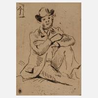 Bildnis eines sitzenden Herren und im Hintergrund kleiner angedeuteter Galgen, Radierung, 1873 (wohl späterer Abzug), an der Blattunterkante beschriftet, Erhaltungsmängel, Darstellungsmaß ca. 14,7 x 11 cm, Blattmaß ca. 25,6 x 19,7 cm. Künstlerinfo: frz. Maler und Grafiker (1839 Aix-en-Provence bis 1906 Aix-en-Provence), Lehre in einer Bank, und ab 1859 Jurastudium, welches er 1861 abbrach und gegenüber seiner Familie Durchsetzung des Besuchs einer Zeichenschule und Umzug nach Paris, hier Kontakt zu Émile Zola, Besuch der Académie Suisse, hier Begegnung im Camille Pissarro, 1871 Umzug nach L´Estaque, ab 1889 lebte der Künstler sehr zurückgezogen, Quelle: Wikipedia und Internet.