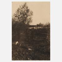 zwei auf einer Blumenwiese, unter wolkenlosen Himmel liegende Kinder, Radierung, Ende 19. Jh., links oben wohl Verlagszeichen „KG“, unter Passepartout und hinter Glas gerahmt, Darstellungsmaß ca. 20,6 x 14,0 cm. Künstlerinfo: eigentlich Wilhelm Maria Hubertus Leibl, bedeutender dt. Maler, Zeichner und Graphiker (1844 Köln bis 1900 Würzburg), zunächst Lehre als Schlosser, ab 1861 Schüler bei Hermann Becker in Köln, studierte ab 1863 an der Akademie München bei Hermann Anschütz, Alexander Strähuber, Arthur Georg von Ramberg und ab 1868 bei Carl Theodor von Piloty, unterhielt ab 1869 Freundschaft zu Gustave Courbet, 1869 gemeinsames Atelier mit Theodor Alt, Rudolf Hirth du Frênes und Johann Sperl in München, 1869-70 Studienreise nach Paris, 1870 Gründung des “Leibl-Kreises” der bis 1875 Bestand hatte und dem unter anderem Wilhelm Trübner, Carl Schuch, Theodor Alt, Karl Haider und zeitweise auch Hans Thoma angehörten, 1873 Rückzug aus dem Münchner Kunstleben, lebte seit dem zusammen mit dem Maler Johann Sperl in Berbling und Bad Aibling in Oberbayern, 1892 Ernennung zum Professor, Anfang 1900 wegen Herzleiden zur Kur in Bad Nauheim und Weiterreise zur Schwester Katharina Kirchdorffer geborener Leibl nach Würzburg, Quelle: Thieme-Becker, Matrikel der Münchner Akademie und Wikipedia.
