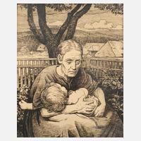 erschöpfte Mutter ihr Kind auf dem Schoß haltend, Algraphie, im Medium ligiertes Monogramm und datiert "HTh (18)95", leicht gegilbt, hinter Glas in geschnitzen Rahmen gerahmt, Falzmaß ca. 44 x 36 cm. Künstlerinfo: dt. Maler und Graphiker (1839 Bernau bis 1924 Karlsruhe), zunächst zeitweise Lehre als Lithograph und Stubenmaler in Basel sowie Uhrenschildermacher in Furtwangen, parallel autodidaktische Mal- und Zeichenstudien, studierte 1859-66 an der Kunstschule Karlsruhe bei Ludwig Des Coudres und Johann Wilhelm Schirmer, anschließend kurzzeitig in Basel und Düsseldorf, 1868 Aufenthalt in Paris hier beeinflusst von Gustave Courbet und der Schule von Barbizon, 1870-76 in München, 1874 erste Italienreise mit Aufenthalt in Rom, ab 1878 tätig in Frankfurt am Main, 1899-1901 in Kronberg und Mitglied der Kronberger Malerkolonie, freundschaftlich verbunden und angeregt durch Arnold Böcklin, Wilhelm Leibl, Wilhelm Steinhausen und Wilhelm Trübner, 1899 zum Professor ernannt, 1899-1920 Direktor der Kunsthalle Karlsruhe, Quelle: Thieme-Becker und Internet.