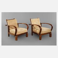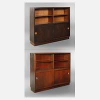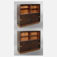 deutsch, 1930er Jahre, eichefurniert, dunkelbraun gebeizt, jeweils mit vier Schiebetüren, die Regalböden höhenverstellbar, geringe Gebrauchsspuren, Maße je 120 x 150 x 36 cm.