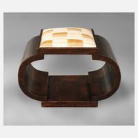 wohl Frankreich 1930er Jahre, im indischen Palisander furniert, rechteckige Platte mit profilierter Zarge, getragen von zwei u-förmigen Füßen mit gewelltem Stand, Maße 75 x 162 x 90 cm.