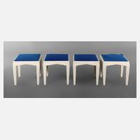 wohl Felix Kayser für Schiller-Möbel Stuttgart 1930er Jahre, Buche und Nadelholz massiv, später weiß lackiert, Bezug aus blauem Wollstoff erneuert, rest.bed., Maße 43 x 43 x 43 cm.