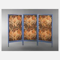 1920er Jahre, Gestell aus Nadelholz blau gefasst, originale Stoffbespannung mit bedrucktem Floraldekor, Altersspuren, Maße 150 x 204 cm.