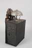 gemarkt Maurice Bonnavaron á Noiretable, Frankreich, um 1830, Front aus Messingblech fein getrieben und graviert, Emailziffernblatt mit römischen Ziffern, Werk mit Halbstundenschlag auf Glocke, Faltpendel, H Gehäuse 40 cm.