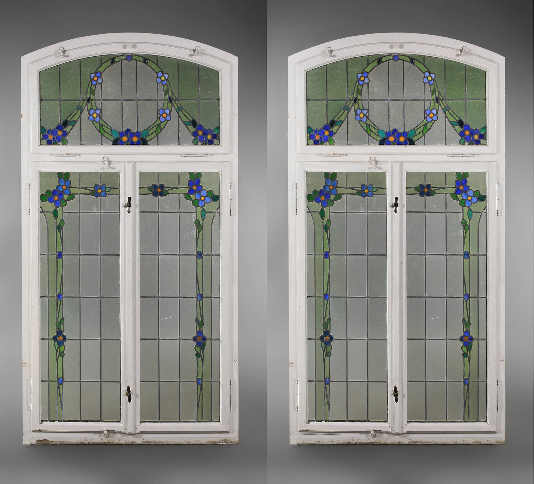 aus einer sächsischen Villa um 1900, zweiflügelig mit Oberlicht, Ornament aus Blütengirlanden, insgesamt guter Originalzustand, H 195 x B 107 cm.