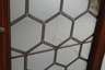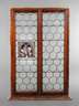 2. Hälfte 19. Jh., Rahmen aus massivem Nadelholz mit Fensterbank, zweiflügelig, mit Windbändern, mittig ein fein gemaltes Schmuckglas im Renaissancestil mit üppigem Wappen, seitlich je drei figürliche Darstellungen, links unten monogrammiert H. A., drei Segmente des Zierglases gerissen, H 149 x B 98 cm.