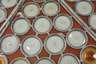 2. Hälfte 19. Jh., aus sechs einzelnen Segmenten, Butzenscheiben aus leicht bläulichem Glas, eine Butze gerissen, ein Segment mit Fehlstellen, D gesamt 76 cm.