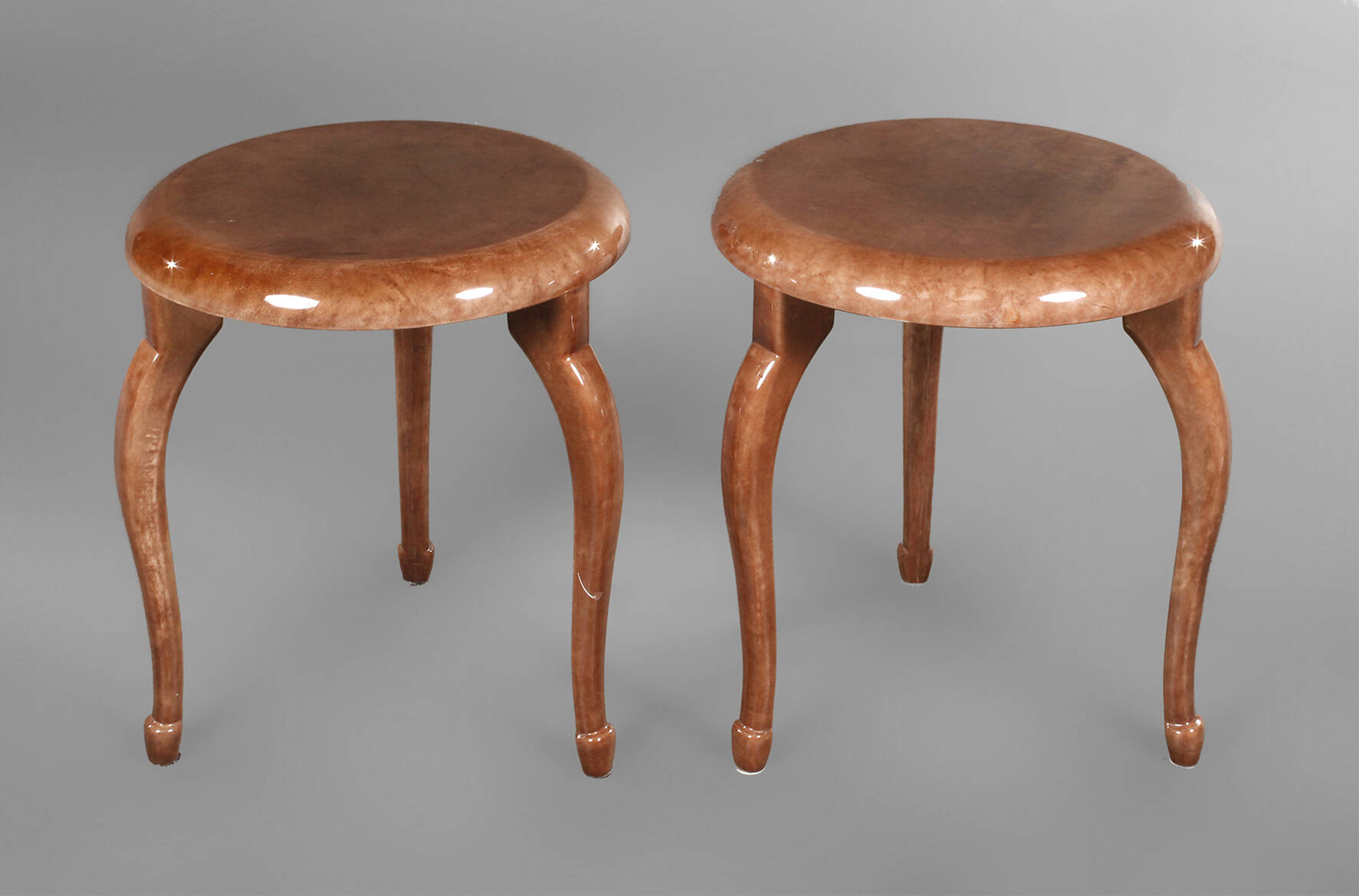 Italien, 1970er Jahre, Holzgestell mit Ziegenleder bespannt, hellbraun gefärbt und lackiert, sehr guter Zustand, H 50 cm, D 45 cm.
