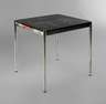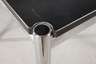 um 1990, quadratischer Tisch mit schwarz lackierter Platte aus Esche, verchromte Zarge und Beine, normale Gebrauchsspuren, Maße 74 x 75 x 75 cm.