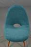 Italien, 1960er Jahre, schalenförmiger Sitz aus elastischem Kunststoff, mit federnder Lehne, Gestell aus Esche massiv, Bezüge erneuert, Maße 82 x 60 x 70 cm.