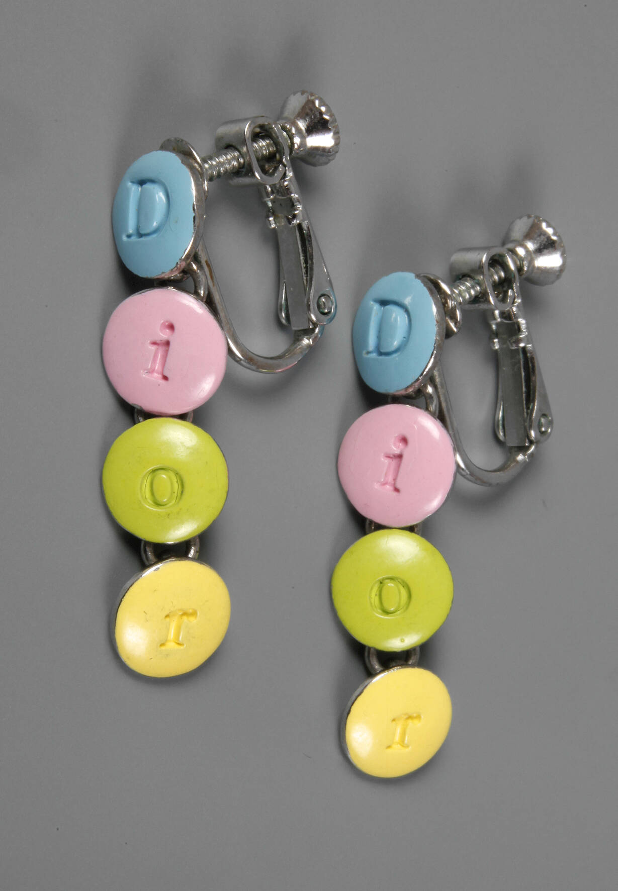 um 2000, Metall vernickelt, jeweils mit vier Abhängern und hierauf Schriftzug Dior, L ca. 33 mm.