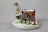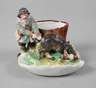 um 1870, ungemarkt, Porzellan mit matter polychromer Aufglasurbemalung, Jäger mit Hund und Wildschwein an einem Baumstamm, Fuß des Hundes kaum sichtbar restauriert, L 12 cm.