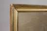 Rahmen aus ca. 5 cm breiter, steigend profilierter, kreidegrundierter, versilberter und schelllackpatinierter Holzleiste, Gehrungen geschnitten, Oberflächenkratzer, mit passendem Glas als Beigabe, Falzmaße ca. 43 x 65 cm.
