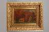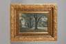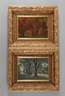 zwei Rahmenpendants aus ca. 9,5 cm breiten, steigend profilierten, mit Eichenlaubdekor gestuckten und vergoldeten Holzleisten, Gehrungen geschnitten, Erhaltungsmängel, je mit Kunstdruck als Beigabe versehen, Falzmaße je ca. 21,5 x 31 cm.