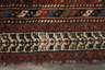 1. Hälfte 20. Jh., im Mittelfeld Rautenmotive in kräftigem Kolorit, breiter, aus mehreren Zierbändern bestehender Bordürenbereich, Ablaufspuren, Randbeschädigungen, Maße 179 x 146 cm.