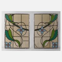 um 1900, Floralmotiv aus Farbglas, fünf Segmente mit Haarriss, Maße je 57 x 40 cm.