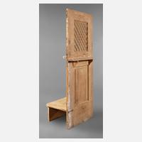 wohl 19. Jh., Nadelholz massiv, abgebeizt, gitterförmig verstrebtes Fenster, rückseitig mit ausklappbarer Bank, rest.bed., Maße 140 x 60 cm.