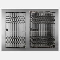 um 1930, Eisenprofil geschwärzt und vernietet, komplett mit Laufschienen, B 1,16 x H 2,00 m.