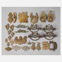 meist 18./19. Jh., bestehend aus vier klassizistischen Kommodenbeschlägen, paar Biedermeier-Türbeschlägen, zwei Sätzen barocken Kommodenbeschlägen (Nachguss) sowie diversen Einzelbeschlägen.
