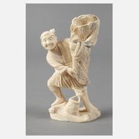 Japan, Anfang 20. Jh., signiert, Elfenbein aufwendig beschnitzt und graviert, vollplastische Darstellung eines Fischers, sein Netz auswerfend, alt repariert, winz. best., H 13 cm. BITTE BEACHTEN: VERSAND ERFOLGT NUR INNERHALB DER EU – SHIPPING TO THE EU MEMBER COUNTRIES ONLY.