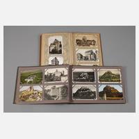 meist vor 1945, ca. 250 topographische Ansichten, u.a. Gössweinstein, Marienburg (Mosel), Mylau, Schönburg (Saale), Ruine Araburg, Ebreichsdorf, Ruine Kaja im Thayathale, wenige farbig lithographiert, in einem quer- und in einem hochformatigen Album.