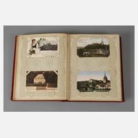 vor 1945, ca. 300 topographische Ansichtskarten, viele farbig lithographiert um 1910, u. a. Leipzig (Luna-Park, Hauptbahnhof, Diakonissenhaus), Bad Dürrenberg (Elektrizitätswerk, westliches Gradierwerk), Bad Elster (Louisasee, Promenade), Spreewald Dolzke-Fließ, Fürstenwalde, Bad Schmiedeberg, Burgruine Kohren, Hohenstein-Ernstthal Berggasthaus, Gruss vom Löbauer Berge, Kalkberge Bülowkanal, Naumburg Realgymnasium, Blick auf See und Stadt Strausberg, Siebeneichen bei Meissen, Bad Freienwalde, in Jugendstilabum.