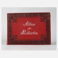 meist um 1910/30, ca. 288 vorwiegend topographische Postkarten, teilweise farbig lithographiert, u. a. Großbreitenbach, Schwarzatal, Fröbelturm Oberweißbach, Erfurt, Kurhaus Salzungen, Wartburg, Ranis, Veste Wachsenburg, Gotha, Osterburg Weida, Schloss Osterstein Gera, Markt in Gera, Saalburg, Mühlhausen, Oberhof, viel Weimar, u. a. altes Hotel Elephant, Neues Museum, Belvedere, dabei auch Drachenhöhle Syrau i. V., in rotem Jugendstilabum, altersgemäße Erhaltung.