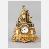 Frankreich, um 1870, Bronze vergoldet und partiell grün gefasst, im Sockelbereich mit Alabasterscheiben hinterlegt, Pendulenwerk mit Halbstundenschlag auf Glocke, Deckglas und Pendel fehlen, Funktion nicht geprüft, Höhe 43 cm.