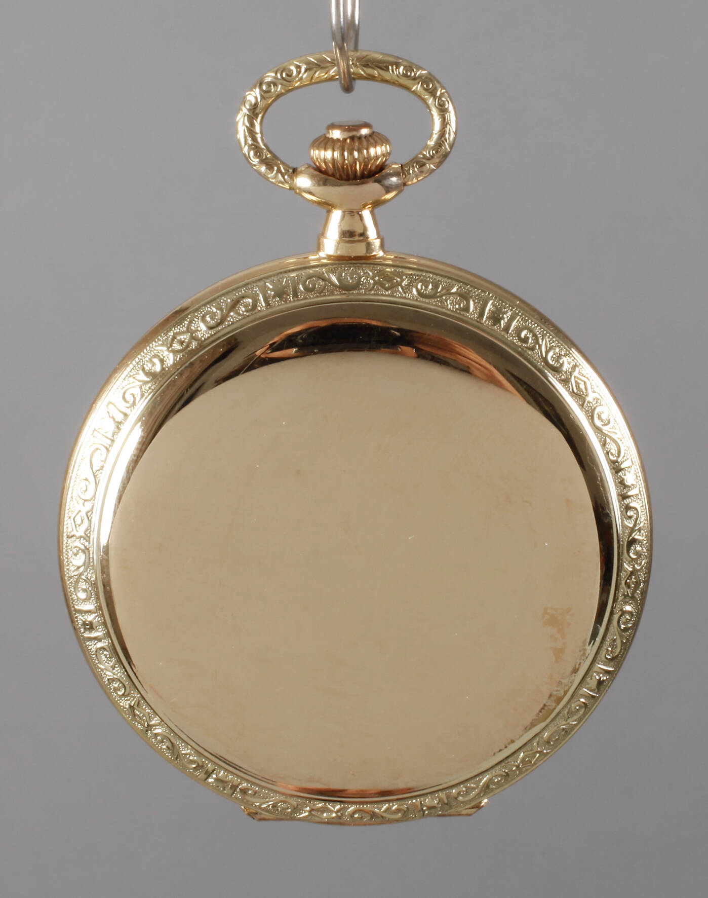 Schweiz, um 1930, vergoldetes Gehäuse von Kollmar & Jordan Pforzheim, mit reliefiertem Rand und Bügel, Ankerwerk mit 15 Steinen, Schraubenunruh, Werk läuft, Z 1, D 50 mm.