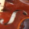 Lille um 1900, mehrfach brandgemarkt P. Hel Lille, zusätzlich am Boden handschriftlich signiert, mit Zettel J. B. Villaume Modell 1853, Boden, Zarge und Hals aus Spiegelahorn, ungeteilter, gleichmäßig geflammter Boden in rotbraunem Lack auf gelbem Grund, rissfreie Decke, Wirbelkasten ausgebüchst und Griffbrett unterlegt, typische schwarze Rändelung an Schnecke und den Ecken der C-Bügel noch erkennbar, bespielter Zustand, beigegeben Meisterbogen, gemarkt Hermann F. Edler Dresden, mit Silbermontierungen und erneuerter Bespannung, im Etui, L Korpus 35,7 cm, B oben 16,6 cm, B Mitte 11,1 cm, B unten 20,7 cm.