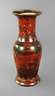 um 1830, cremefarbener Scherben, blaue Kreismarke mit Stern, roter Fond mit Schwarzlot und Emailmalerei mit Gold und Grün, Chinoiserien mit Figurenstaffage in Landschaft, dazwischen Blütenranken, stärkere oberflächliche Fehlstellen, an der Mündung rissig und ein restaurierter Ausbruch, H 102 cm.