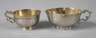 18. Jh., beide Silber geprüft, eine rund mit Schlangenhenkel, teilvergoldet, am Boden graviertes Besitzermonogramm W, ungepunzt, die andere spitzoval gerippt mit geschweiftem Henkel, ebenfalls teilvergoldet, diese mit Stadtmarke Moskau Georg der Drachentöter und unbekannter Meistemarke "B.A" um 1760–1790, beide im guten altersgemäßen Zustand, D 5,5 cm, L 8,5 cm, G zusammen ca. 73,6 g.