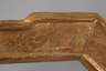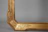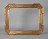 Rahmen aus maximal ca. 8,5 cm breiter, wulstig begrenzter, grundierter, vergoldeter und partiell gepunzter Holzleiste mit ausgestellten und abgeschrägten Ecken, Eckverbindungen geblattet, Gehrungen über Eck gearbeitet, Falz nachträglich erweitert, alte Reparaturen, holzwurmstichig, Bestoßungen und Bereibungen, Falzmaße ca. 59,5 x 46 cm.