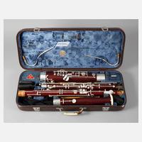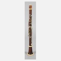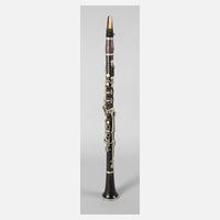 19. Jh., gemarkt Mollenhauer & Söhne Fulda, mehrfach gestecktes Gehäuse aus dunklem Holz, vernickelte Klappen, Zierelemente aus Elfenbein, ohne Mundstück, Alters- und Gebrauchsspuren, L 41,5 cm.