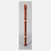 Mitte 20. Jh., brandgemarkt Arnolds & Sons, vierfach steckbares Gehäuse aus rötlich gebeiztem Tropenholz, versilberte Metallmontierungen, sehr guter, spielbereiter Zustand, im Etui, dieses gemarkt G. H. Hüller Schöneck, L ges. ca. 180 cm.