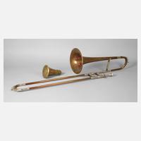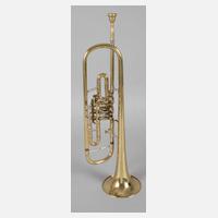 2. Hälfte 20. Jh., gemarkt C. A. Wunderlich Siebenbrunn (Vogtl.), poliertes Messinggehäuse, verchromte Klappen, mit Mundstück im Etui, gute Erhaltung, L 48 cm.