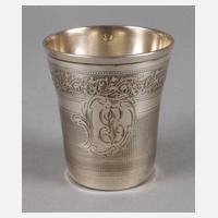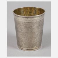 Frankreich, Ende 19. Jh., gestempelter Minervakopf, konische Form mit verstärktem Lippenrand, fein ziseliert, guter altersgemäßer Zustand, H 7,5 cm, G ca. 57 g.