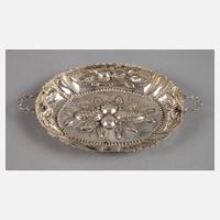 Mitte 20. Jh., gestempelt "Rall. Black & Co. New York English Sterling 105", ovale Form mit feststehendem gerippten Henkel, die seitlichen Abschlüsse verziert mit jüdischen Portraits, sehr schöner gepflegter Zustand, L 28 cm, G ca. 550 g.